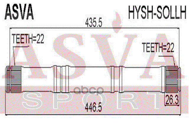 ПОЛУОСЬ ЛЕВАЯ 22x446x22