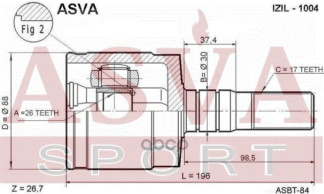 Наименование: ШРУС ВНУТРЕННИЙ ЛЕВЫЙ 26х30x17