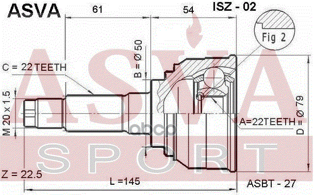 Купить запчасть ISZ02 ШРУС НАРУЖНЫЙ 22x50x22 с доставкой в Эль-Монте.