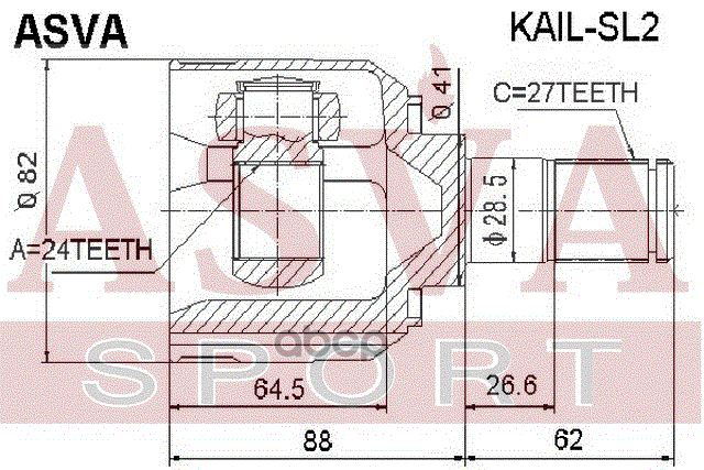 Купить запчасть KAILSL2 Шрус внутренний левый 24x41x27 с доставкой в Эль-Монте.