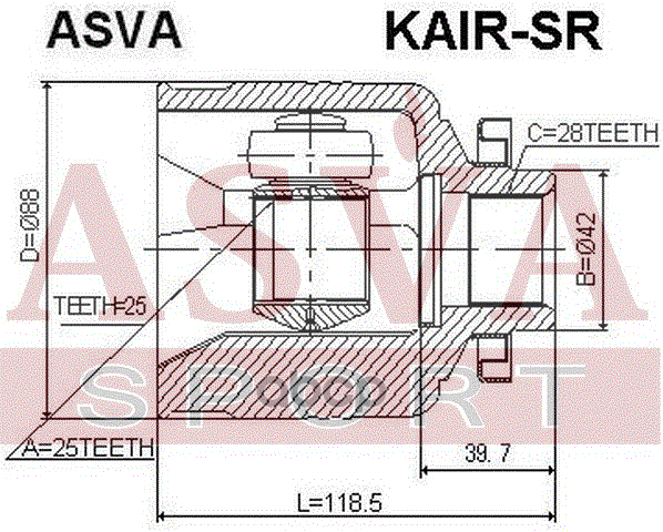Купить запчасть KAIRSR ШРУС внутренний правый 25x42x28 с доставкой в Эль-Монте.