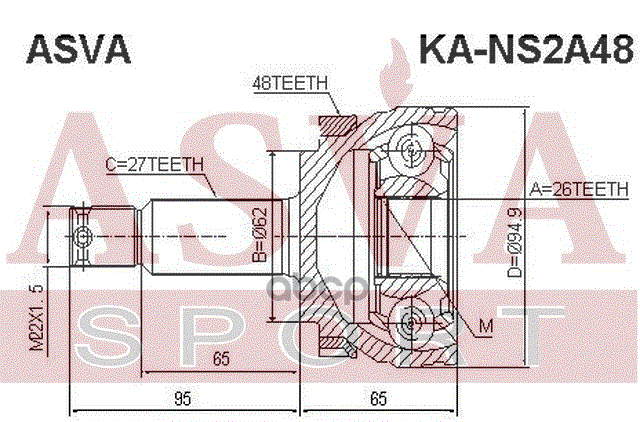 ШРУС НАРУЖНЫЙ 26/62/27 KANS2A48 495002E550 495002E600 495002E950 495002E750(повреждена упаковка)