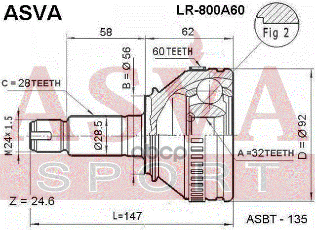 Купить запчасть LR800A60 ШРУС НАРУЖНЫЙ 32х56х28 с доставкой в Эль-Монте.