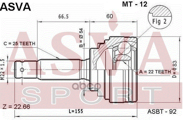 Купить запчасть MT12 ШРУС НАРУЖНЫЙ 22x54x25 с доставкой в Эль-Монте.