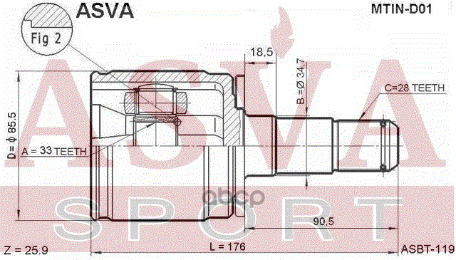 Купить запчасть MTIND01 ШРУС ВНУТРЕННИЙ ЛЕВЫЙ 33x34.7x28 с доставкой в Эль-Монте.