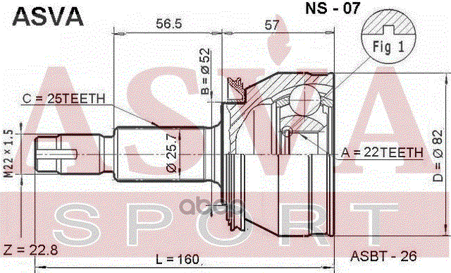 Купить запчасть NS07 ШРУС НАРУЖНЫЙ 22x52x25 с доставкой в Эль-Монте.