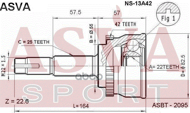 Купить запчасть NS13A42 ШРУС наружный 22x55x25 с доставкой в Эль-Монте.