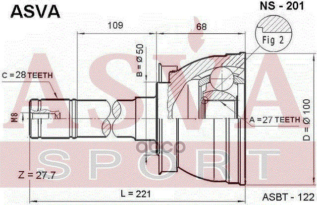 Купить запчасть NS201 ШРУС наружный 27x50x28 NISSAN Terrano R50, Pathfinder R50, Murano Z50 с доставкой в Эль-Монте.