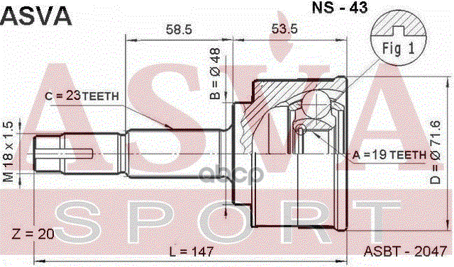 Купить запчасть NS43 ШРУС НАРУЖНЫЙ 19x48x23 с доставкой в Эль-Монте.