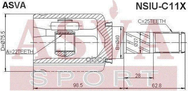 Наименование: ШРУС ВНУТРЕННИЙ 22x40x25
