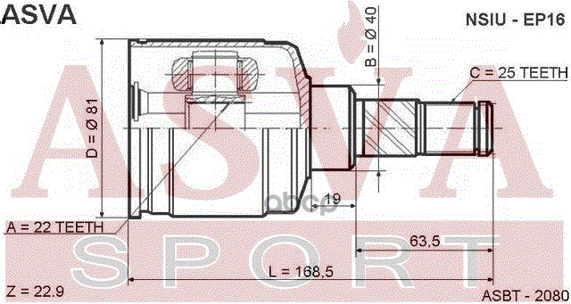 Наименование: ШРУС ВНУТРЕННИЙ 22x40x25