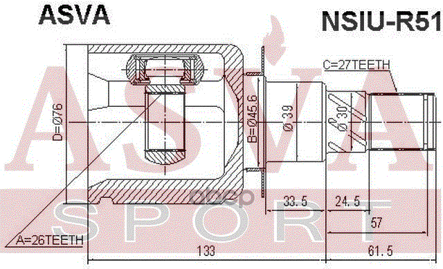 Наименование: ШРУС внутренний передний 26х45.6х27