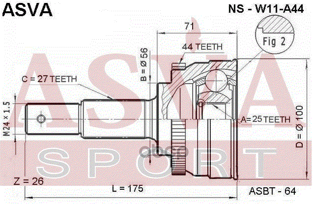 Купить запчасть NSW11A44 ШРУС НАРУЖНЫЙ 25x56x27 с доставкой в Эль-Монте.