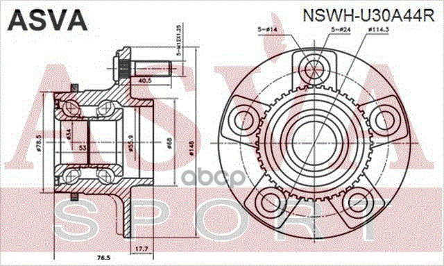 Бренд: ASVA, артикул: NSWHU30A44R, СТУПИЦА ЗАДНЯЯ С КОЛЬЦОМ АБС. |