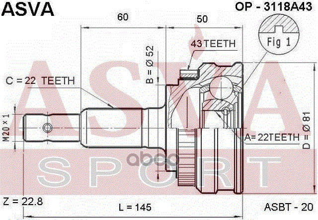 Купить запчасть OP3118A43 ШРУС НАРУЖНЫЙ 22x52x22 с доставкой в Эль-Монте.