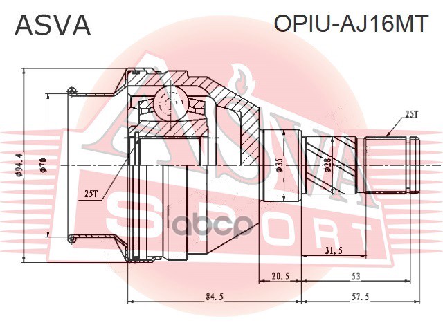 Бренд: ASVA, артикул: OPIUAJ16MT, ШРУС внутренний 25x35x25 OPEL Astra J 2010-2015 1,6 MT. |