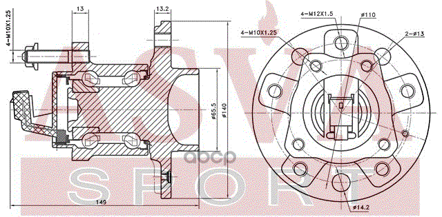 СТУПИЦА ЗАДНЯЯ 5 ОТВЕРСТИЙ С ДАТЧИКОМ АБС
