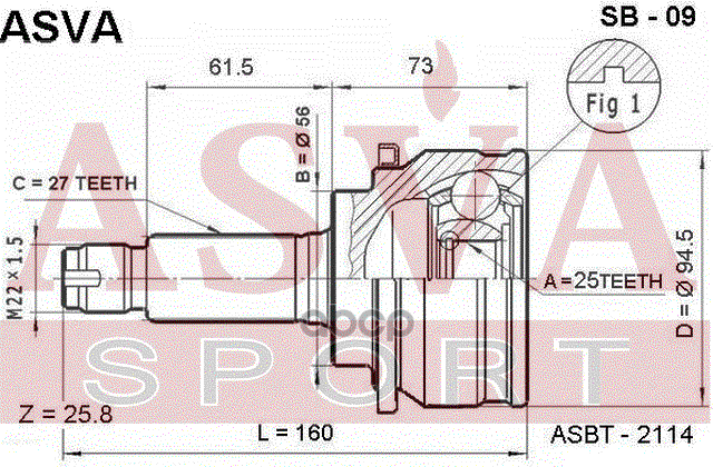 Купить запчасть SB09 ШРУС НАРУЖНЫЙ 25x56x27 с доставкой в Эль-Монте.