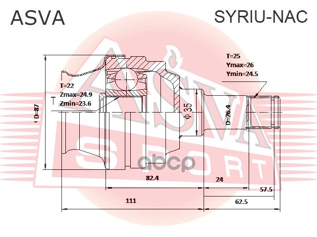 Купить запчасть SYRIUNAC ШРУС ВНУТРЕННИЙ ЗАДНИЙ 22X35X25 с доставкой в Эль-Монте.