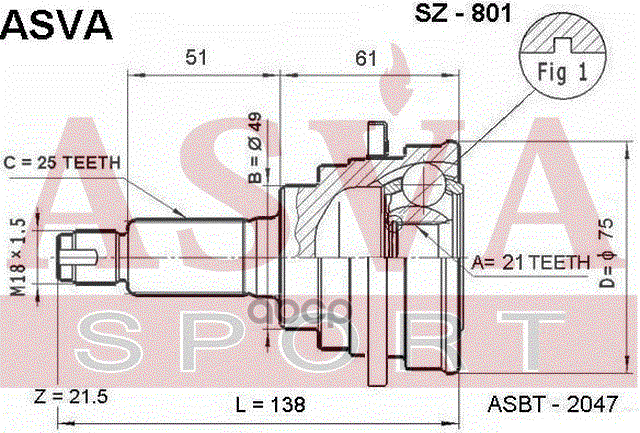 Купить запчасть SZ801 ШРУС(2300) с доставкой в Эль-Монте.