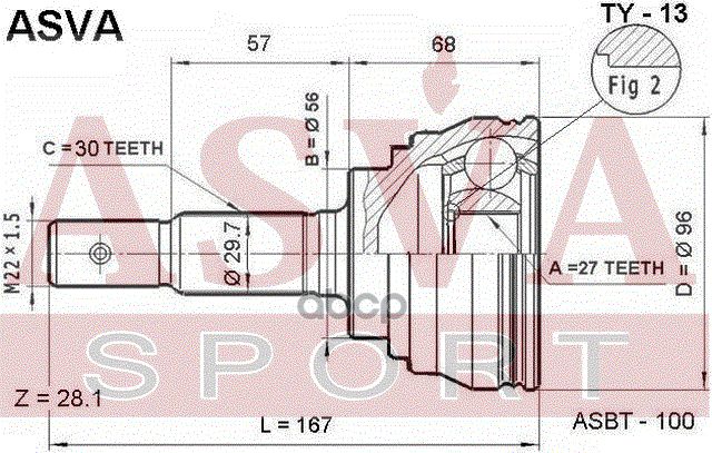 Купить запчасть TY13 ШРУС НАРУЖНЫЙ 27x56x30 с доставкой в Эль-Монте.