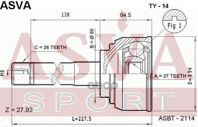 Купить запчасть TY14 ШРУС НАРУЖНЫЙ 27x60x26 с доставкой в Эль-Монте.