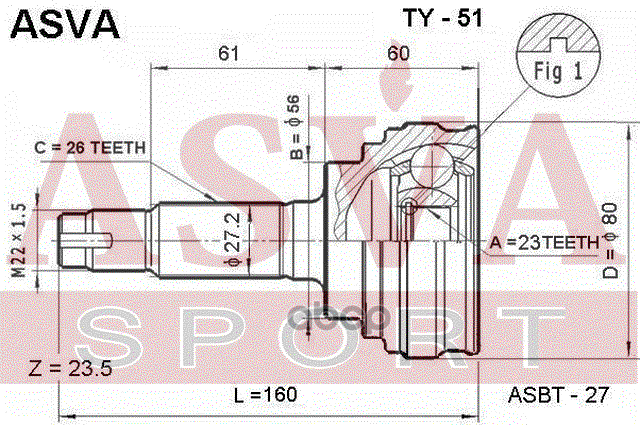 Купить запчасть TY51 ШРУС НАРУЖНЫЙ 23x56x26 с доставкой в Эль-Монте.