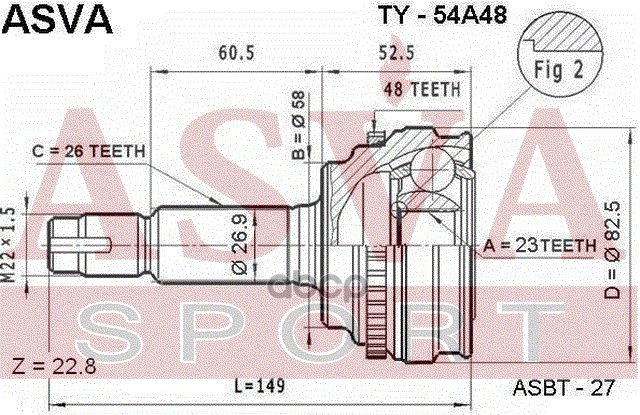 Купить запчасть TY54A48 ШРУС НАРУЖНЫЙ 23x58x26 с доставкой в Эль-Монте.