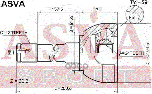 Купить запчасть TY58 ШРУС НАРУЖНЫЙ 24x59x30 с доставкой в Эль-Монте.