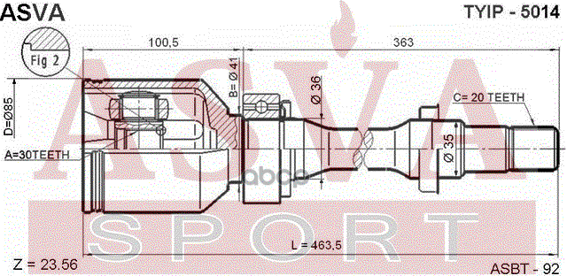 Купить запчасть TYIP5014 ШРУС ВНУТРЕННИЙ ПРАВЫЙ 30x41x20 с доставкой в Эль-Монте.