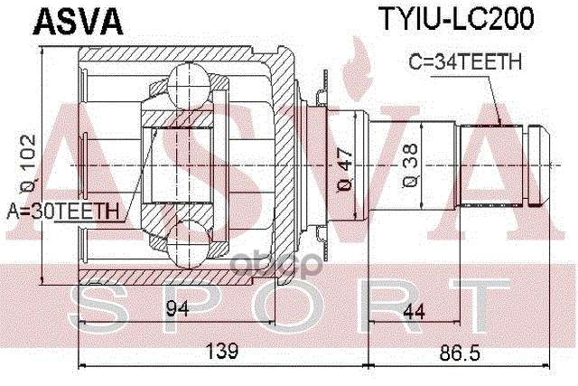 Купить запчасть TYIULC200 ШРУС ВНУТРЕННИЙ 30x50x34 с доставкой в Эль-Монте.