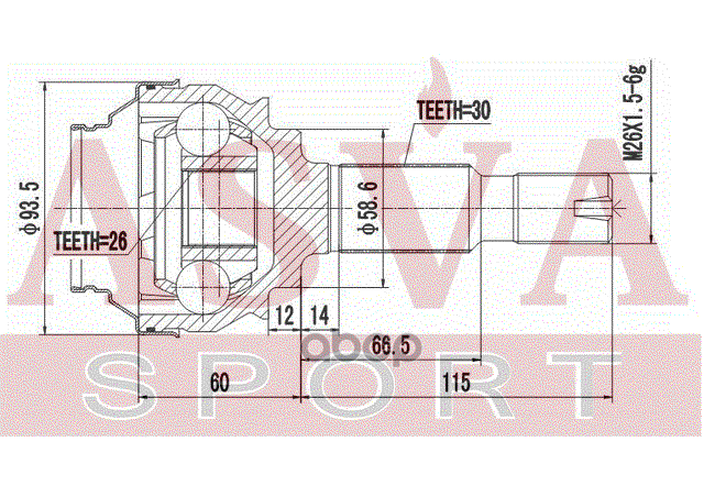 Наименование: ШРУС НАРУЖНЫЙ ЗАДНИЙ 26x58,6x30