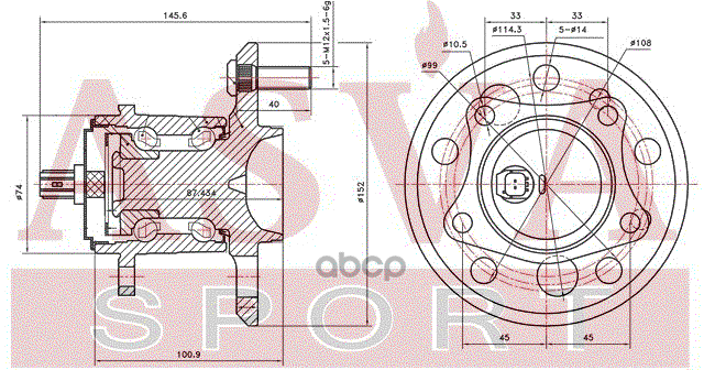 Бренд: ASVA, артикул: TYWHACV50RL, Ступица задняя левая TOYOTA Camry ASV50/GSV50 2011<. |