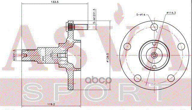 Бренд: ASVA, артикул: TYWHGXE10F, Ступица передняя TOYOTA MARK 2/CHASER/CRESTA GX100 1996-2001. |