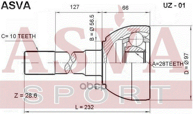 Купить запчасть UZ01 ШРУС НАРУЖНЫЙ 28x56x31 с доставкой в Эль-Монте.