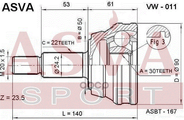 Купить запчасть VW011 ШРУС НАРУЖНЫЙ 30x50x22 с доставкой в Эль-Монте.