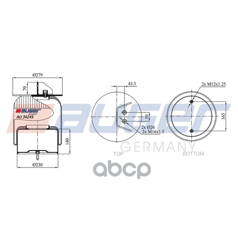 Купить запчасть AU34245K Пневмоподушка в сборе со стал стаканом 2шп-штуцер с доставкой в Эль-Монте.