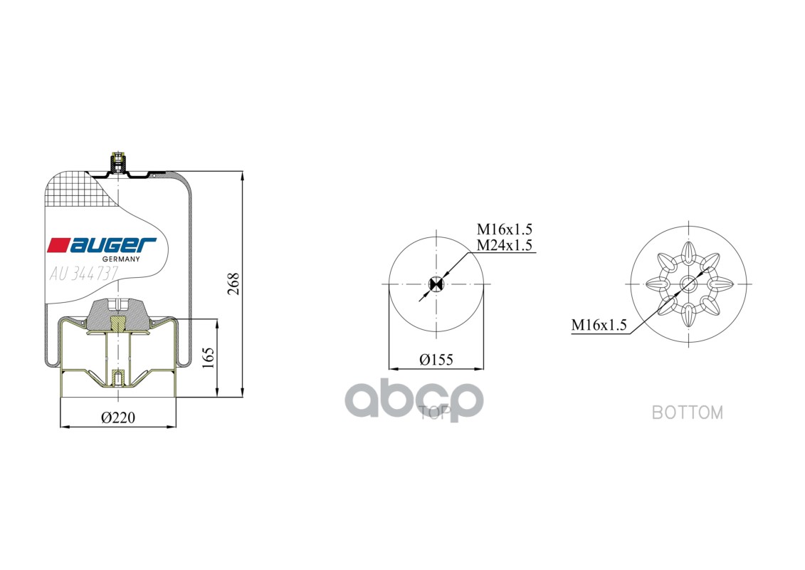 Бренд: AUGER, артикул: AU344737K21, ПНЕВМОПОДУШКА СО СТАКАНОМ НА ЛЕНИВЕЦ MB ACTROS,. |