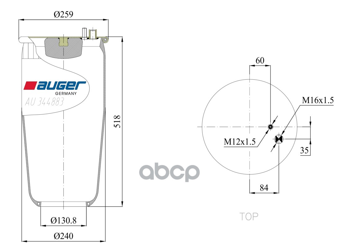 Купить запчасть AU344883 пневмопод. без стак. 1шп-шт.M16 смещ.84 1шп.M12 Низ: отв.D130.8 MAN TGA с доставкой по России.