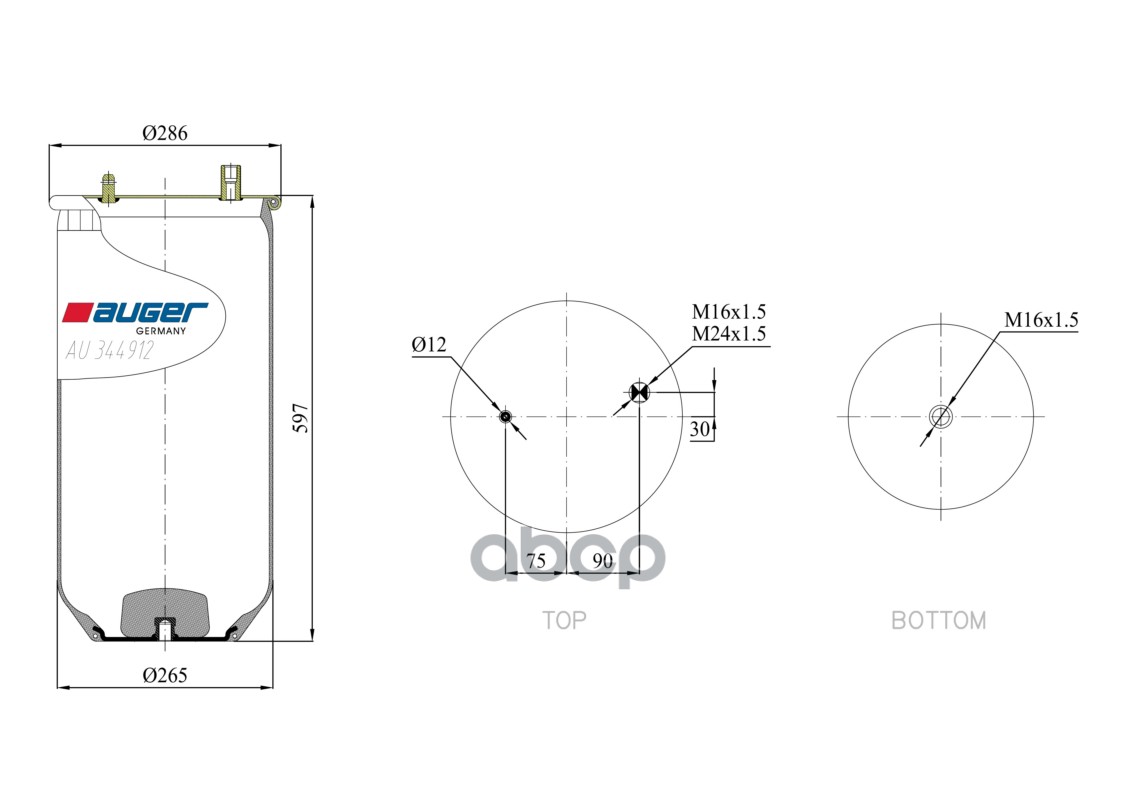 Бренд: AUGER, артикул: AU34491201, ПНЕВМОПОДУШКА БЕЗ СТАКАНА RVI MAGNUMPREMIUM, 286. |