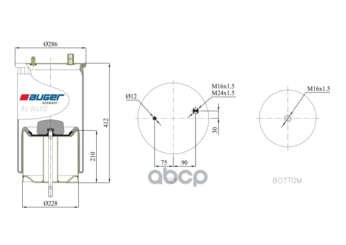 Бренд: AUGER, артикул: AU344912K01, ПНЕВМОПОДУШКА СО СТАКАНОМ RVI PREMIUM, 310X347 1Ш. |
