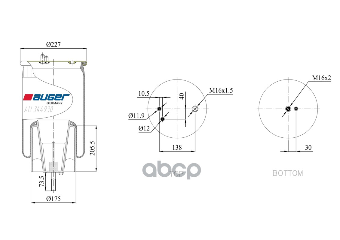 Бренд: AUGER, артикул: AU344930KP, ПНЕВМОПОДУШКА С ПЛАСТИКОВЫМ СТАКАНОМ SCANIA PGR. |