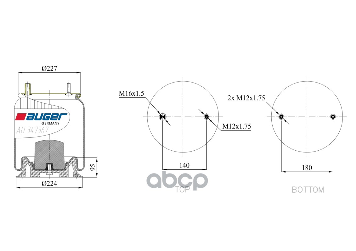 Бренд: AUGER, артикул: AU347367KA, ПНЕВМОПОДУШКА СО СТАКАНОМ 1 ШП.ШТУЦ. 2 ОТВ.. |
