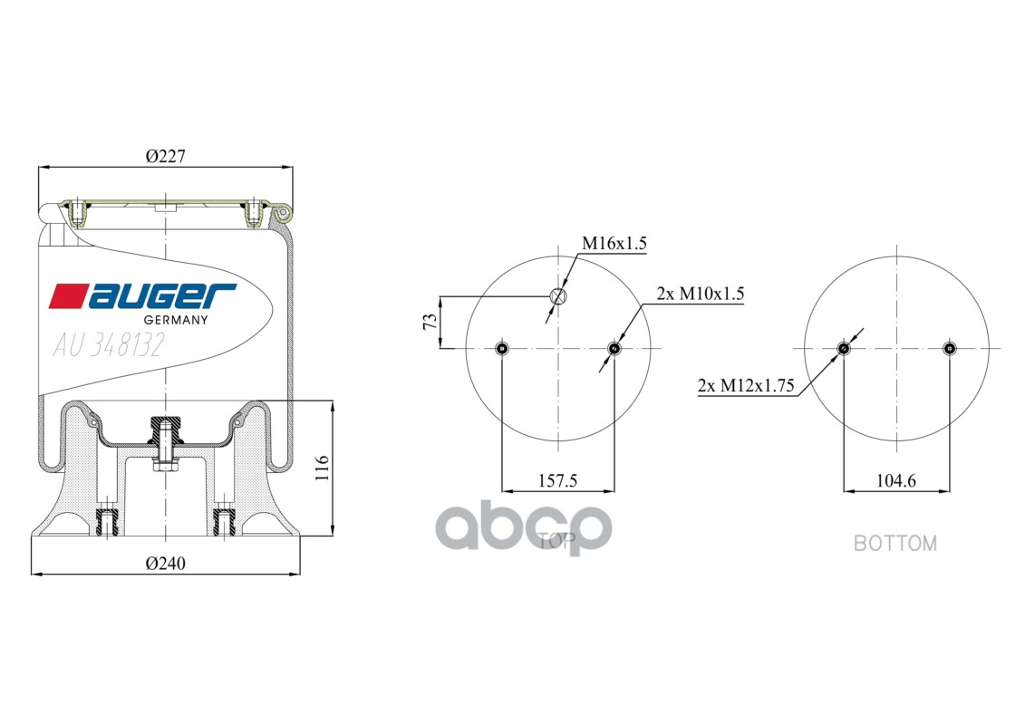 Бренд: AUGER, артикул: AU348132KP, Пневморессора в сборе с пластиковым стак. |
