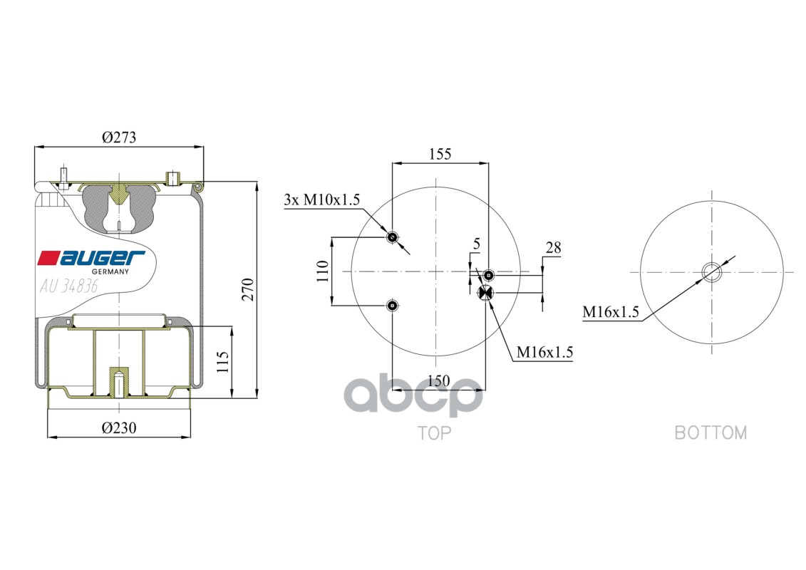 Бренд: AUGER, артикул: AU34836K04, Кожух пневматической рессоры. |