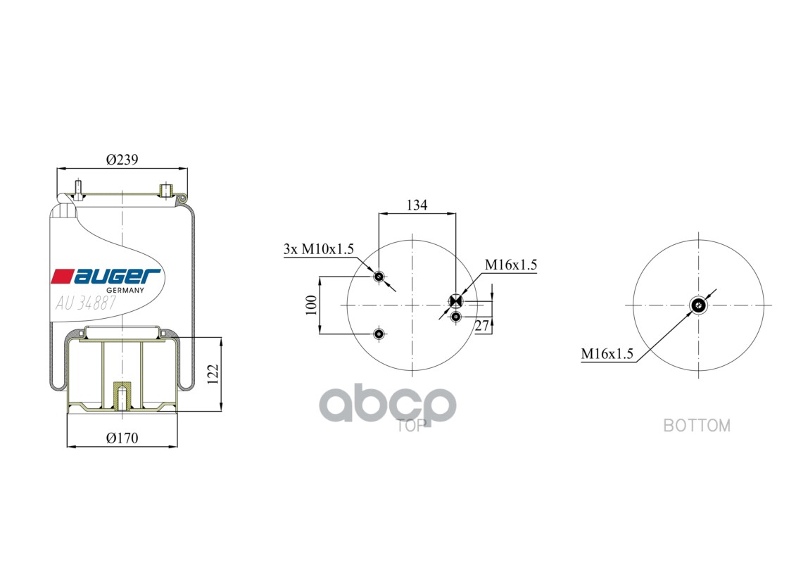 Бренд: AUGER, артикул: AU34887K05, Пневморессора в сборе со стальным стак. |