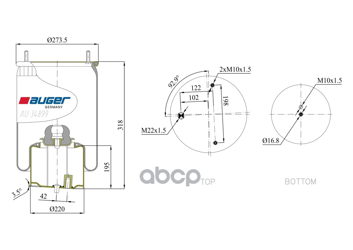 Бренд: AUGER, артикул: AU34899K02, Пневмоподушка в Сборе DAF 325x318. |