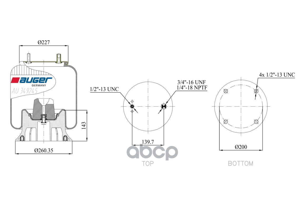 Бренд: AUGER, артикул: AU349245KP, Пневмоподушка в Сборе. |