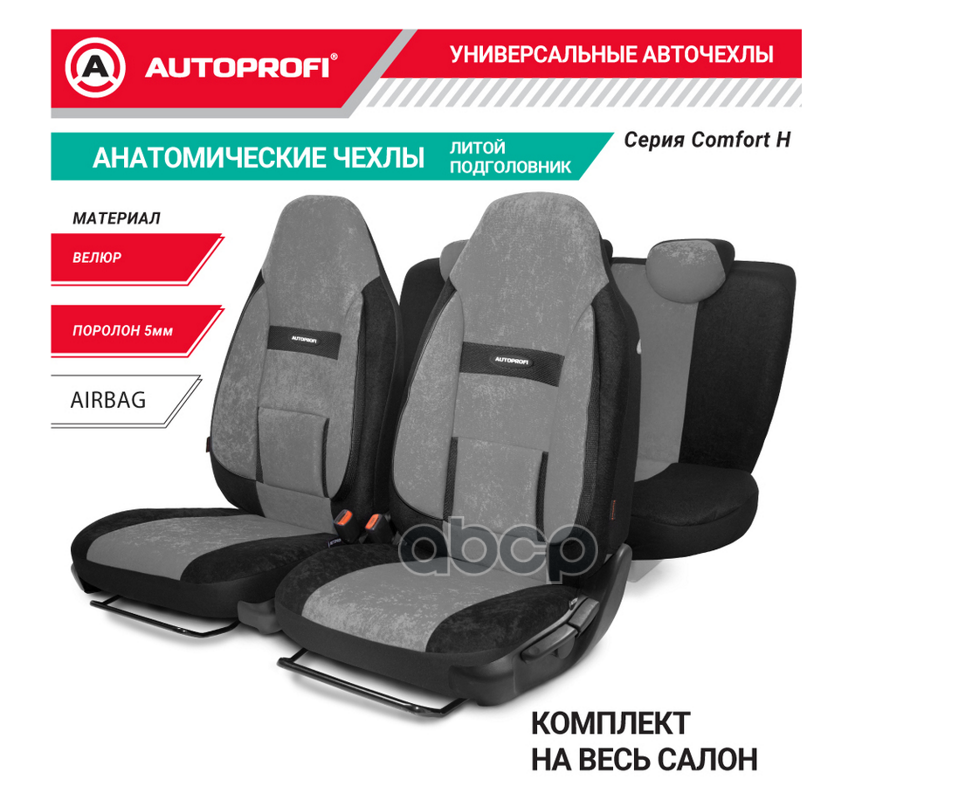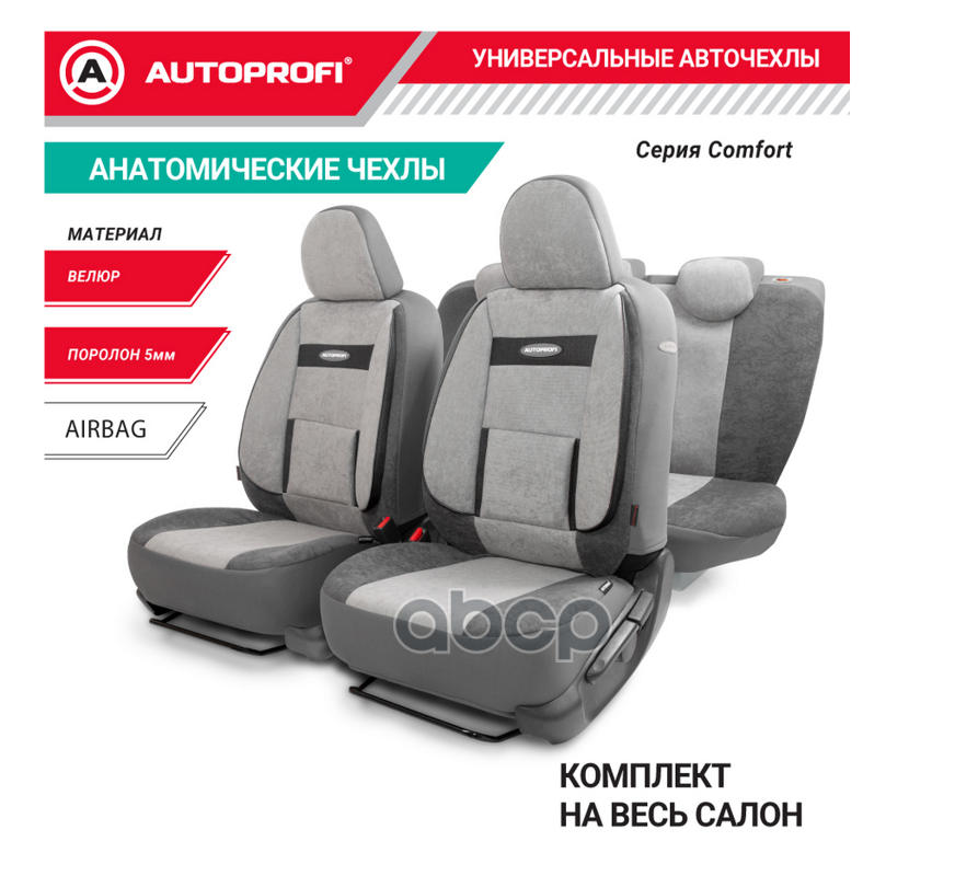 Чехлы Autoprofi Comfort 9 пр. велюр боковая поддержка серые COM-1105H D.GY/L.GY