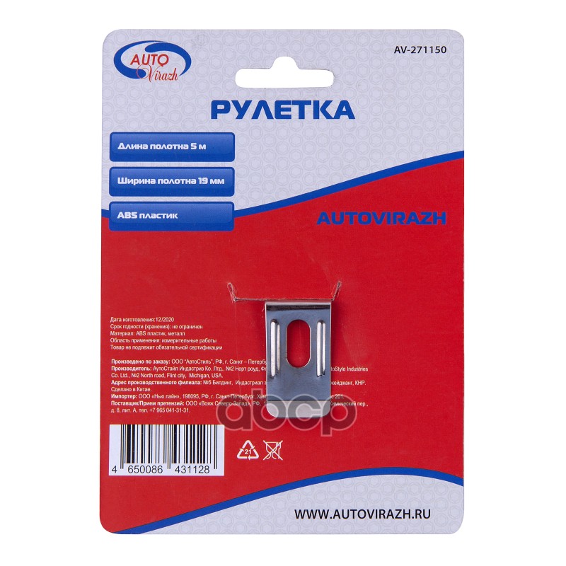 Купить запчасть AV271150 Рулетка пластиковый корпус 5мх19мм AUTOVIRAZH AV-271150 с доставкой в Эль-Монте.